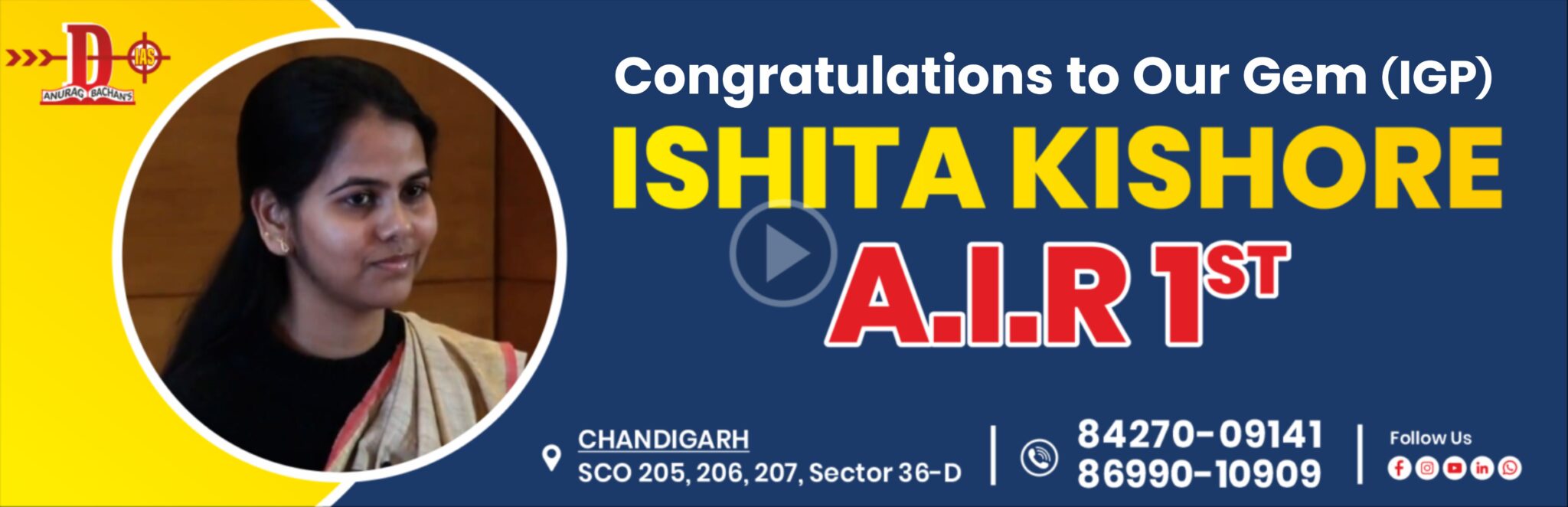 Droanacharya IAS congratulates our Gem Ishita Kishore for securing All India Rank 1st in UPSC Civil Services Exam!!